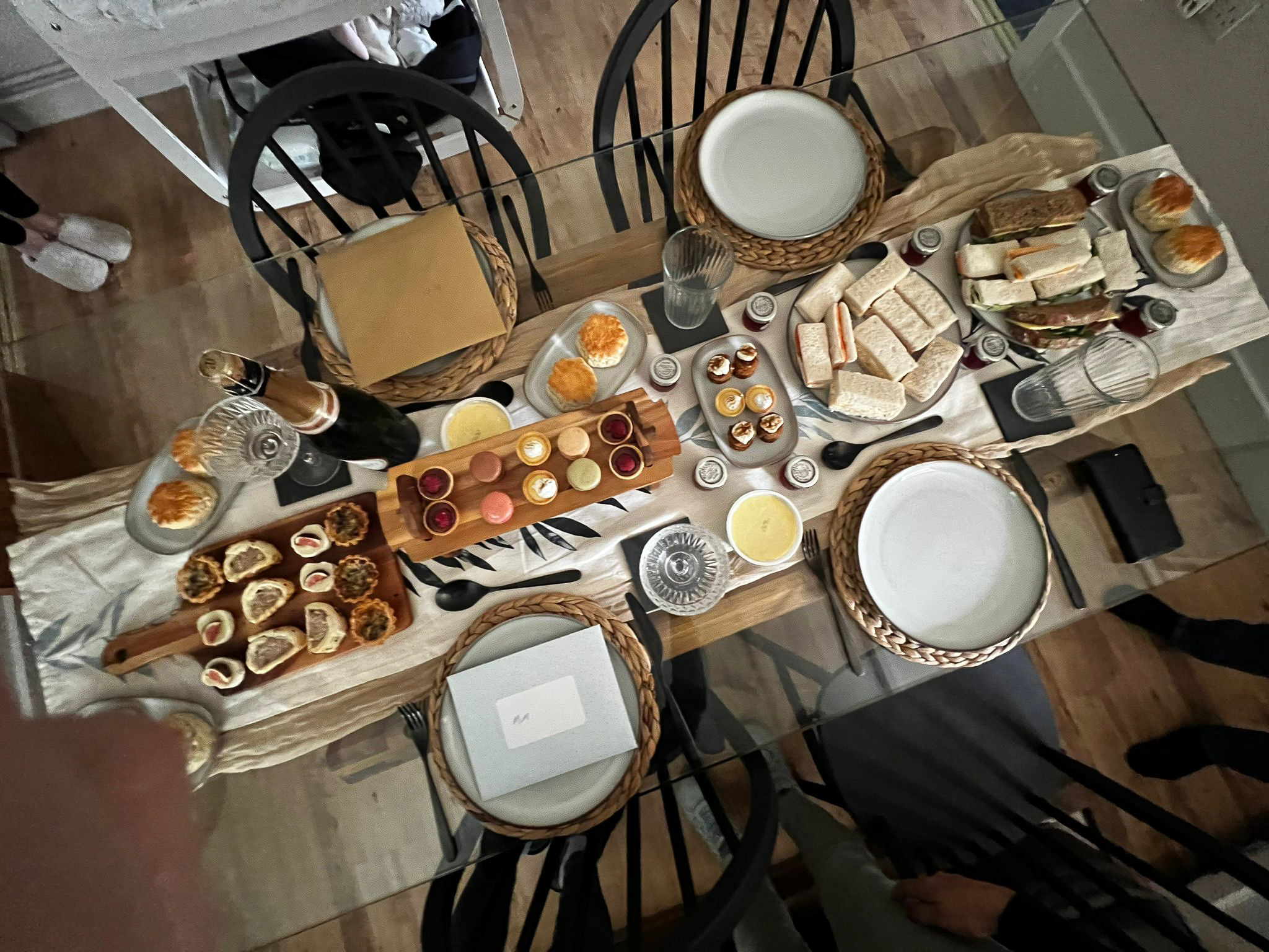 | Sandwich 1 | Smoked salmon and dill cream cheese, Egg mayo and cress, Ham and mustard, Cucumber and cream cheese, Cheese and Pickle, Falafel and Hummus, Prawn and Marie Rose, Pastrami, Emmental and Rocket |